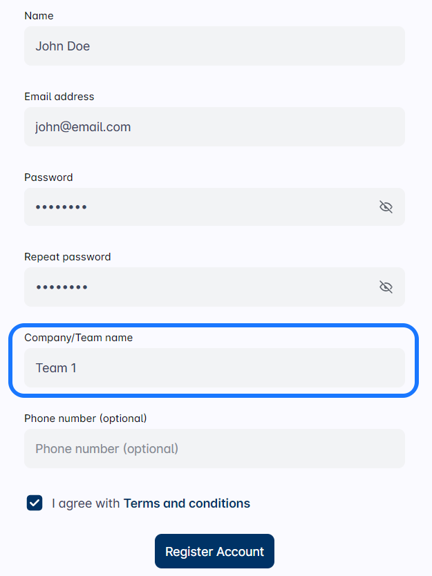 When you first register on the platform, your initial team is created automatically. Its name? It’s simply the company name you entered during registration. Easy-peasy, right? 🎯