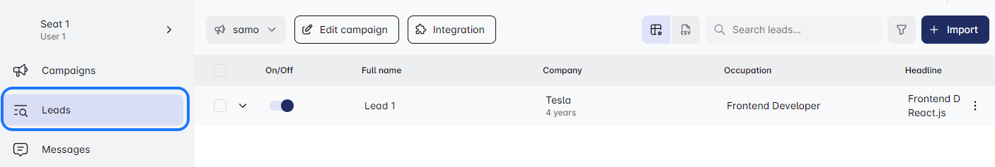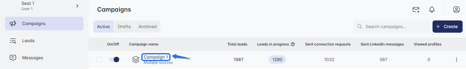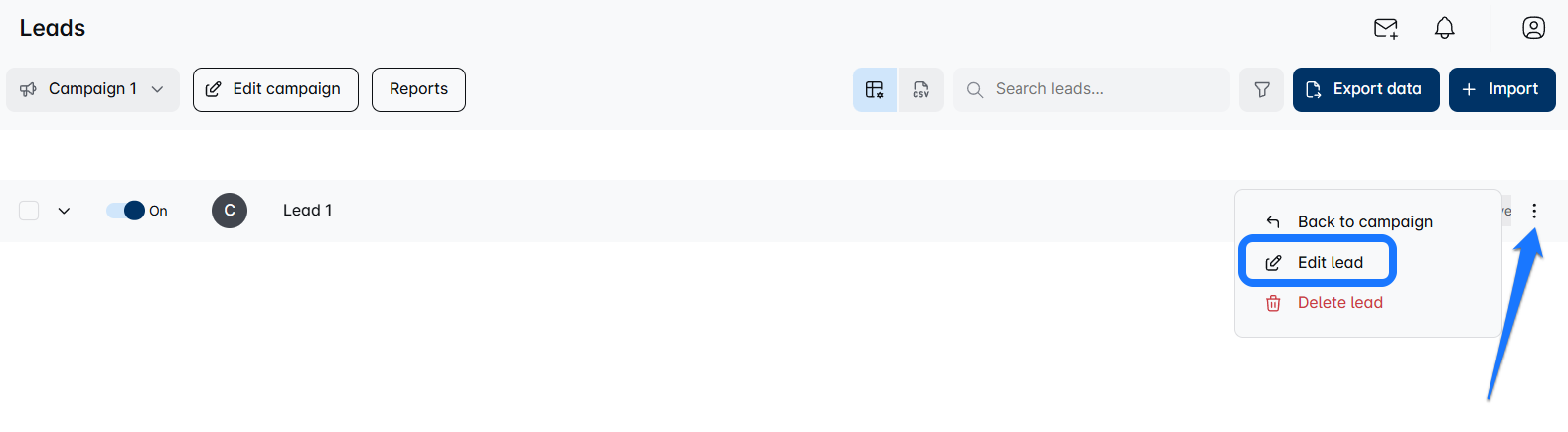 - Start by clicking on your campaign’s name or go to the Lead list page and select the campaign you want to edit. It’s just a click away! 🖱️