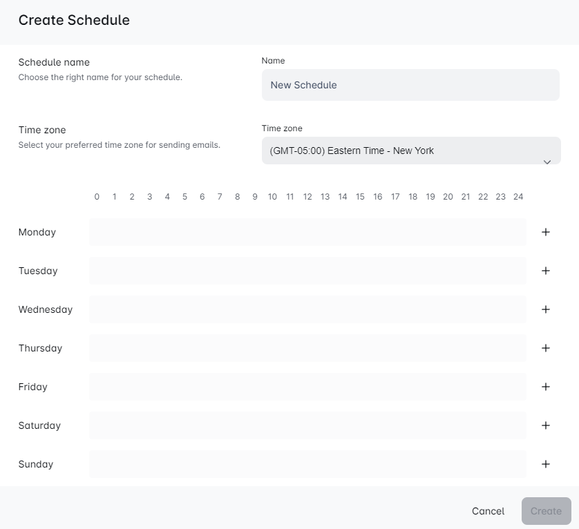 This is your first step toward email scheduling mastery. Click on the 'Create' button in order to start!