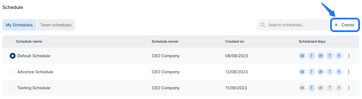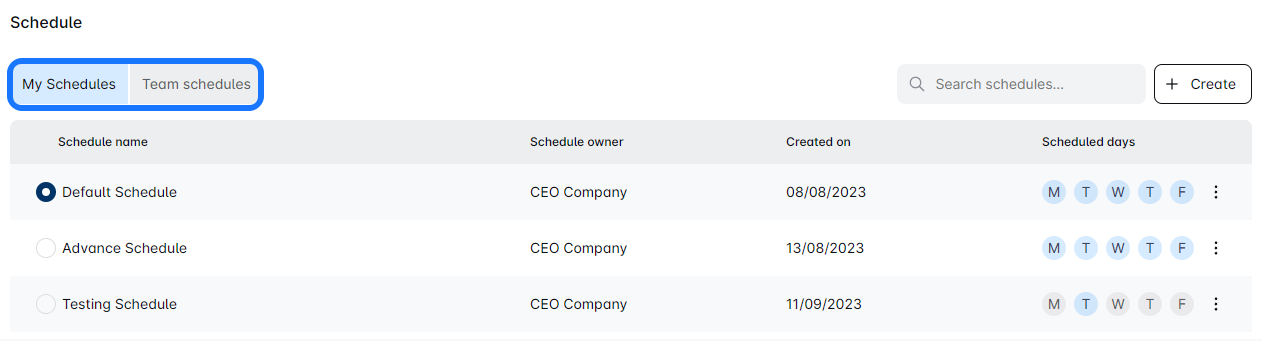 Youβll find two choices: 'My Schedule' and 'Team Schedule.'