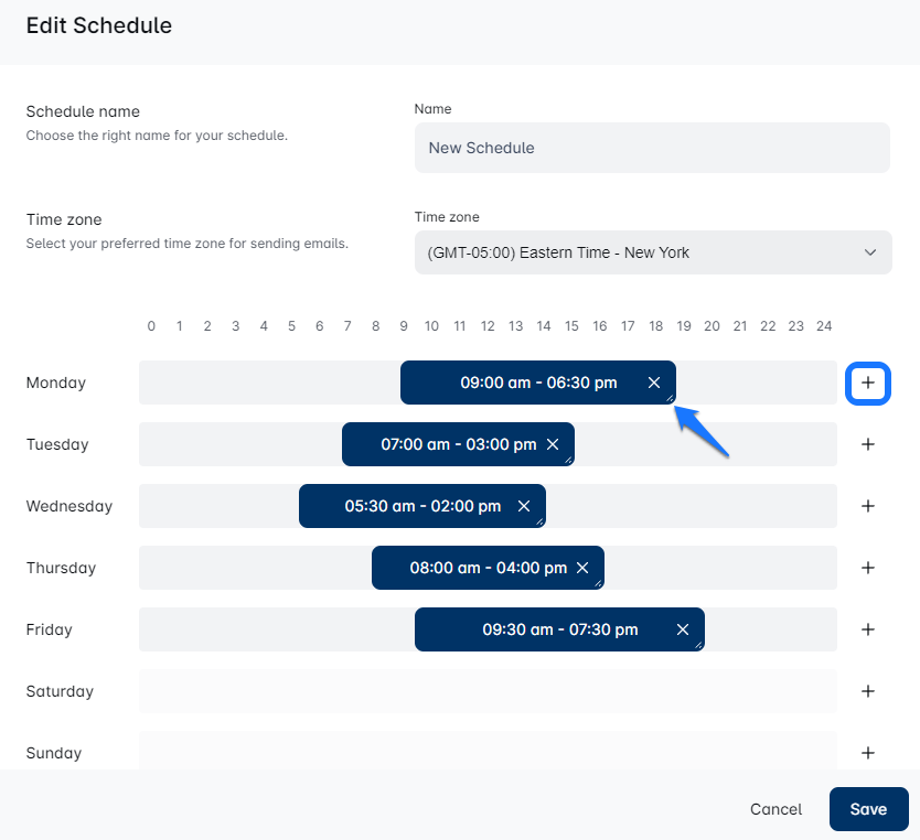 If you donβt set a schedule, weβll use a default schedule: 9 AM to 5 PM, Monday to Friday, New York time.