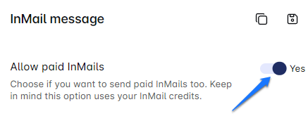 Here's where it gets interesting: Snyper enables you to blend paid and free InMails in your Smart Sequence. Our algorithm makes a difference between Open Profile users and those who can only receive paid InMails. By toggling the "Allow paid InMails" button in the platform, you empower the Smart Sequence to make this decision for you, ensuring a smooth path to your lead through InMail.